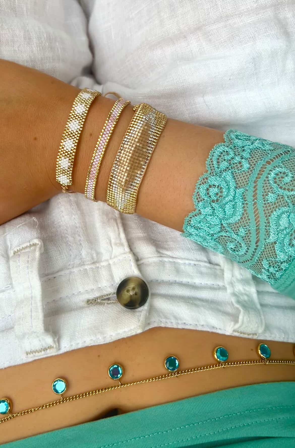 Each piece is thoughtfully crafted with premium Miyuki beads, chosen for their effortless shine and lasting quality. Designed to be stacked, worn, and loved every day.