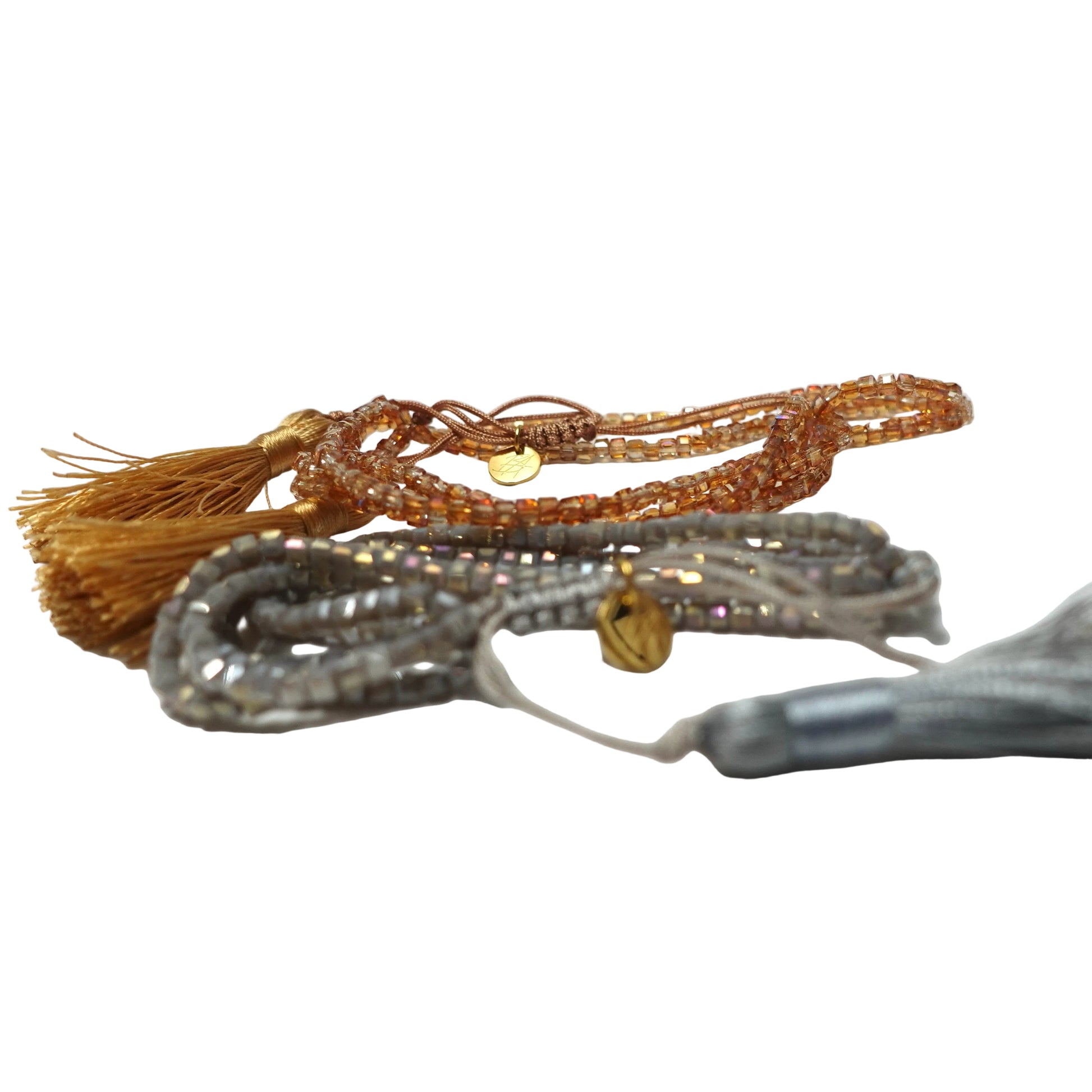 a cascade of color and sparkle, the luna layers bracelet pairs multicolor crystal tassels with an adjustable lace-up clasp for a perfect fit. lightweight and versatile, it moves with you. wear it solo or layered to add a subtle, refined shine from day to night.